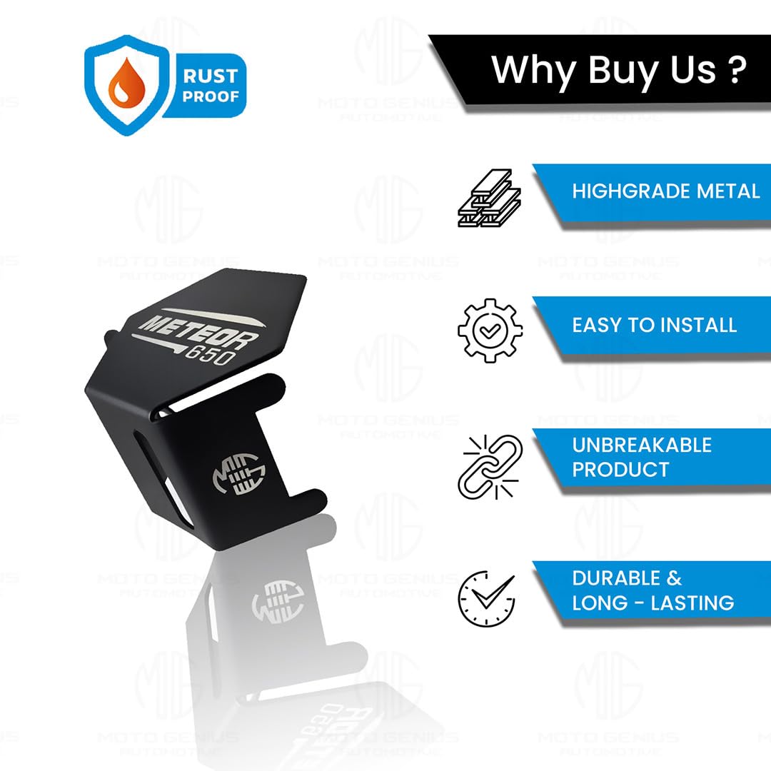 Moto genius stainless steel rear brake oil container guard for re super meteor 650 – durable protection & stylish design for motorcycles (black)