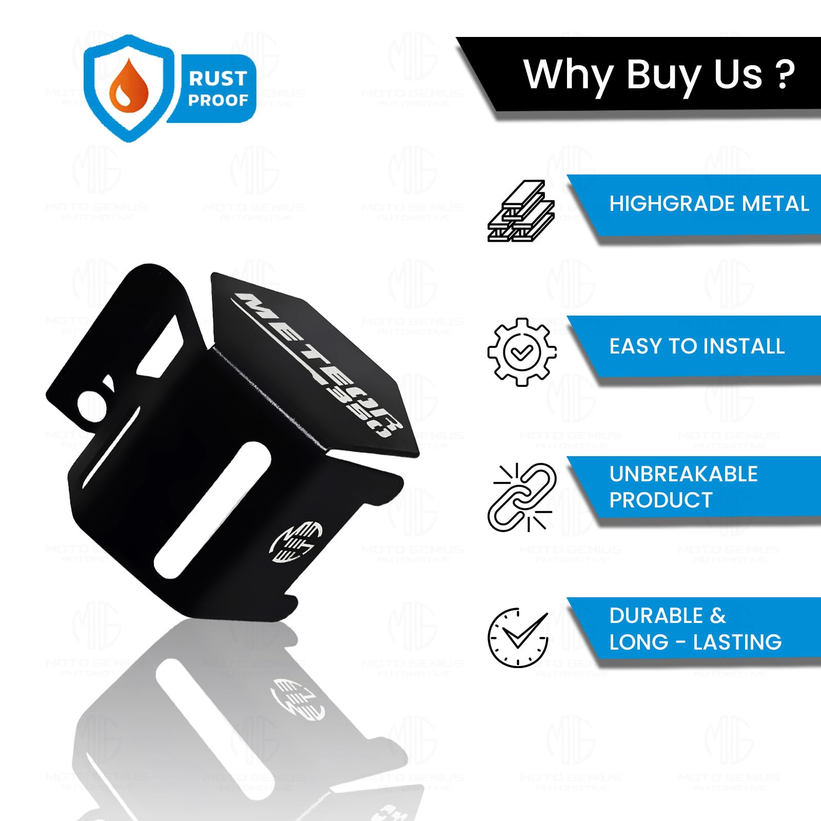 Moto genius stainless steel rear brake oil container guard for meteor 350, durable & stylish protection (black)