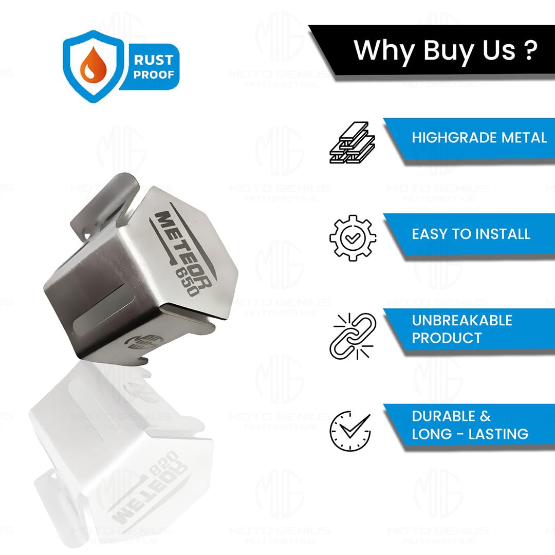 Moto genius stainless steel rear brake oil container guard for meteor 350, durable & stylish protection (silver)