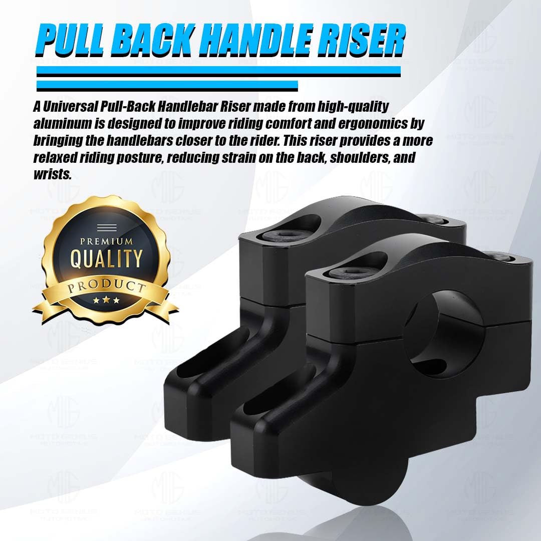 Moto genius universal aluminium pull back/off set handlebar risers for motorbike | adjustable height and angle, lightweight, durable, easy installation