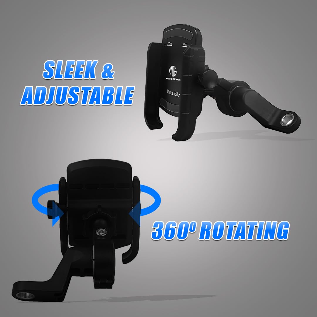 Moto genius universal bike mobile holder, 360° aluminum alloy phone mount for motorcycle, bicycle & scooty | handlebar & mirror fitting, fits all smartphones