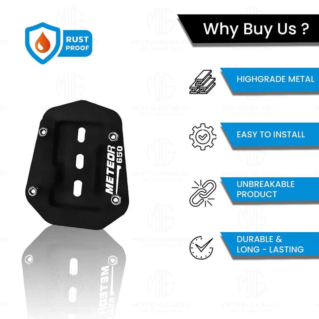 MOTO GENIUS Stainless Steel Side Stand Extender for RE Super Meteor 650 | Heavy Duty Parking Support and Stability Enhancer (Black)