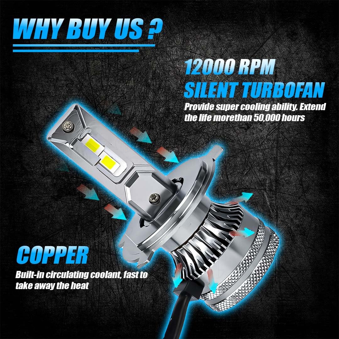 MOTO GENIUS Super Bright 100W LED Headlight Conversion Kit for Car & Motorbike | Waterproof, High Performance, Energy Efficient, Steel & Aluminium Housing – Easy Install(H4)